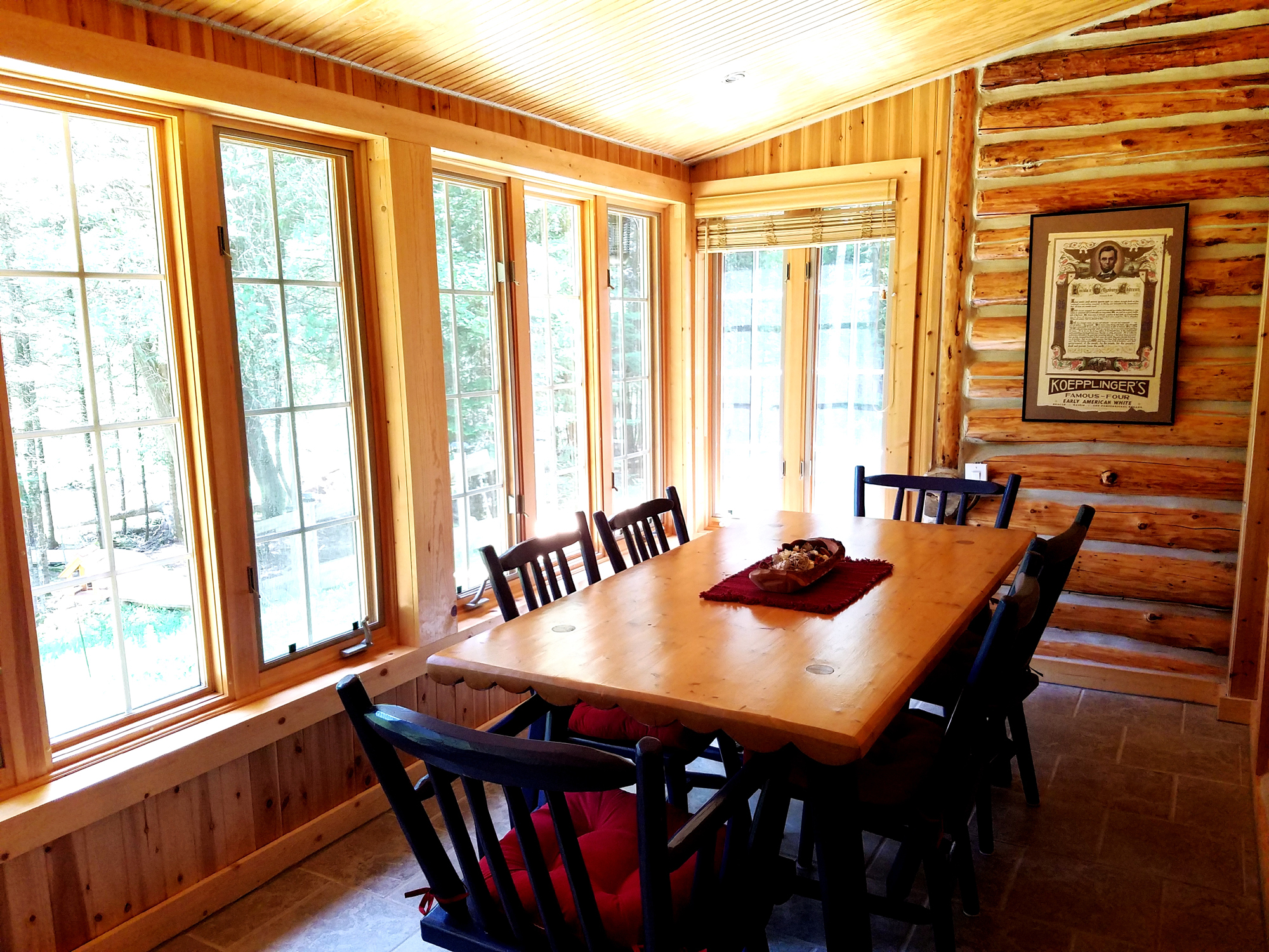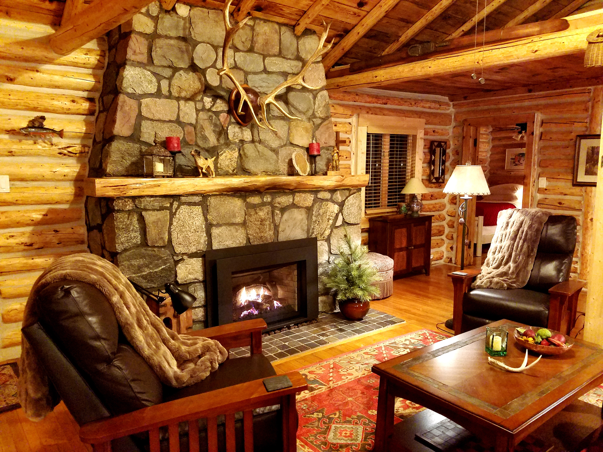 If staying indoors is more your style, sit back in front of a roaring fire and enjoy the winter wonderland from the warmth of the cozy cottage. Enjoy the hygge of the great room with its massive stone fireplace and original amber-aged logs and log beams.