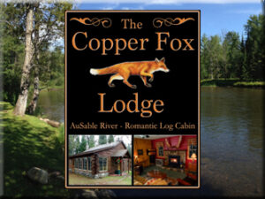 If your dates are NOT available please consider “Copper Fox Lodge” our sister cabin just 3 miles away. Copper Fox Lodge is a private, romantic, luxury appointed, 4-season, riverside log cabin and sits just 50 feet from Michigan’s famed AuSable River known for its legendary beauty.